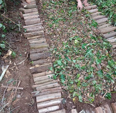 Quando cobrimos os canteiros e deixamos os caminhos com solo exposto, essa área de exposição se torna um vazamento de energia, por onde se evapora a água, compacta o solo, assim impedindo a circulação biológica entre os canteiros.